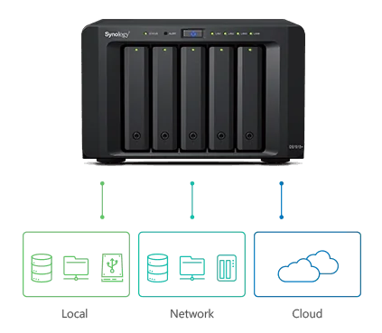 Bạn có thể backup dữ liệu tới thư mục chia sẻ ngay trên NAS (local shared folder), thư mục chia sẻ mạng (network shared folder), máy chủ rsync (rsync server), và các dịch vụ lưu trữ đám mây công cộng (public Cloud service) và tận hưởng tính năng backup đa phiên bản – đến 65535 phiên bản và xoay vòng lưu trữ với Smart recycle.