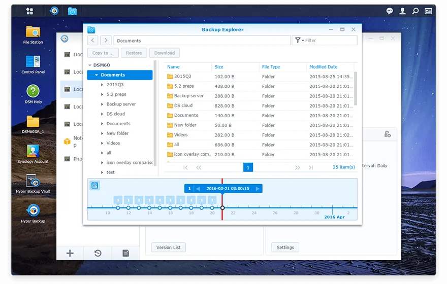 Bạn có thể duyệt các phiên bản sao lưu với File Station trên DSM hoặc công cụ Hyper Backup Explorer trên Windows / Linux.